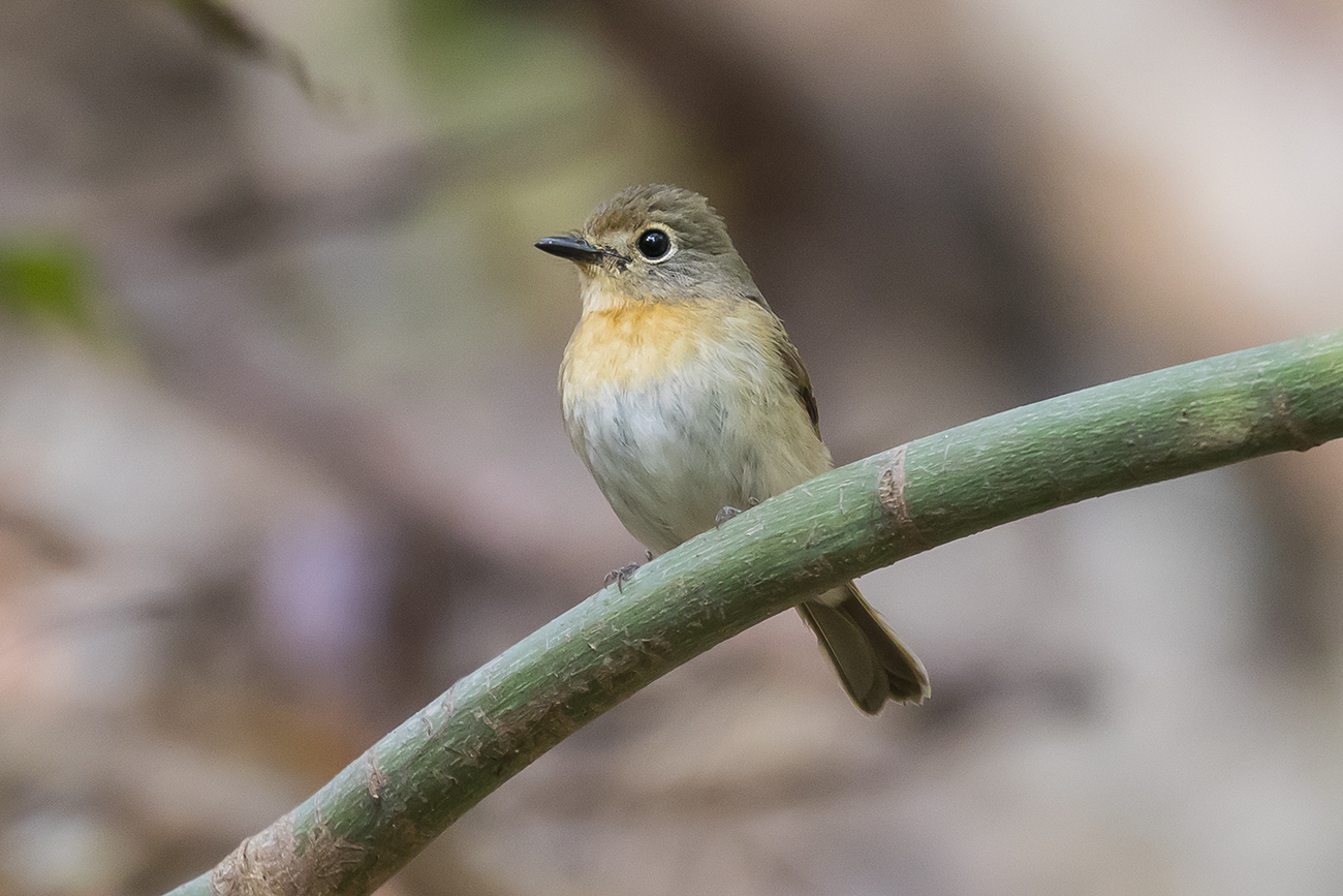 I walked around the hill once without spotting much, so I went back to the spot where I saw the flycatchers. The female Hainan Blue was not shy and came fairly close. I again spotted a Narcissus Flycatcher, but I noticed a very prominent eyebrow on this individual, surely was another male! It's tertiaries and primaries were completely dark, making this an adult male.