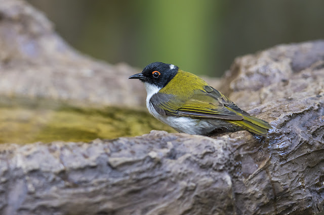 Feeling a little better after the rest I forced myself out of bed to walk around the lodge. The bird feeder right outside our room hosted a few Chestnut-breasted Munias, one of the better-looking Munias out there in my opinion. The bird baths also attracted several birds, including a Yellow-faced Honeyeater.
