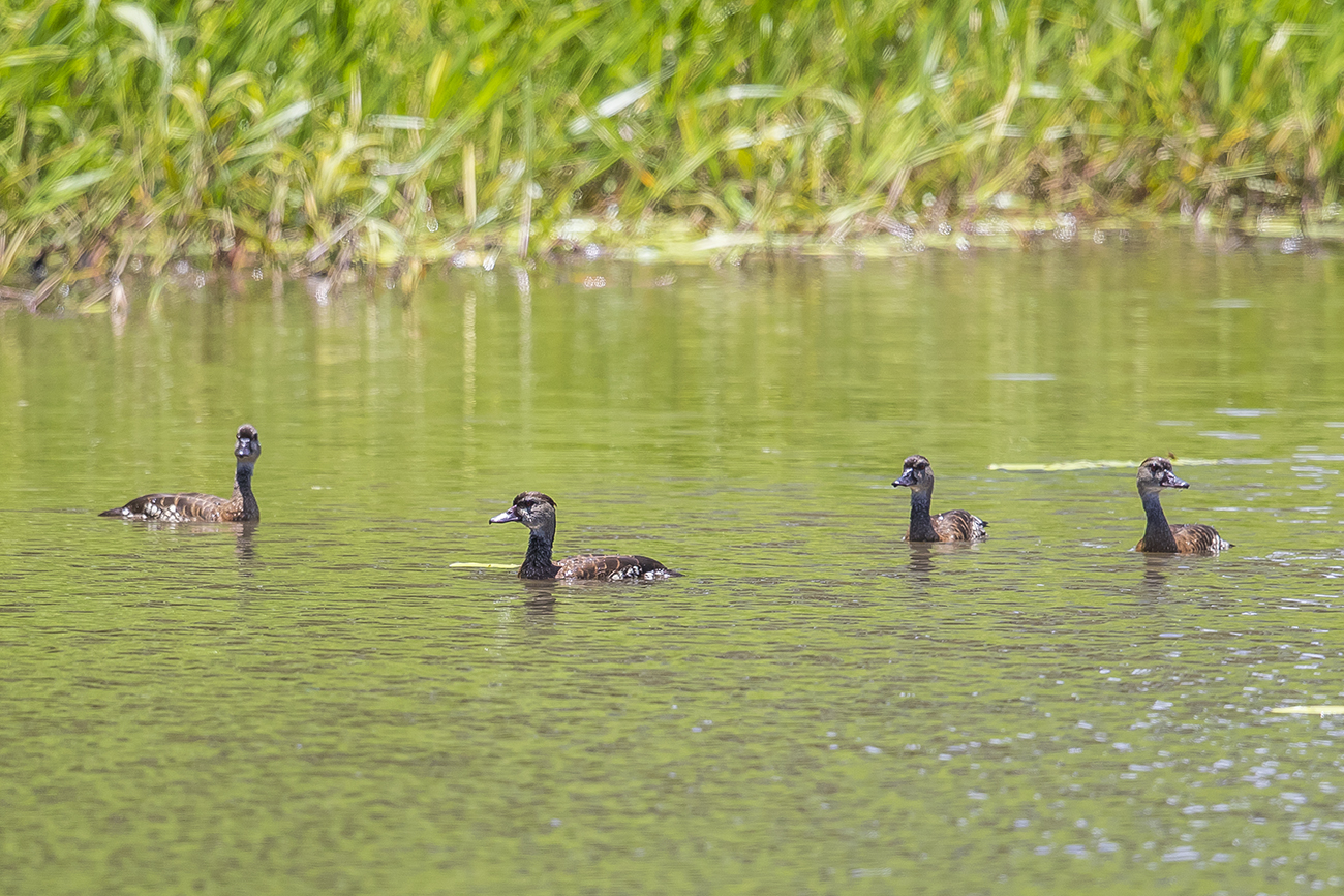 I finally spotted a few ducks swimming on the water, these were Spotted Whistling Ducks, they soon took flight when they saw us coming, their speckled breast showed well inflight. This is a species which had shown range expansion southwards from Cape York. A pair of beautiful Green Pygmy-geese were swam past us, their metallic green backs were especially bright under the sun.